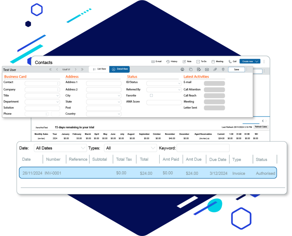 - Create new customer records in Act!, with automatic syncing to accounting platforms for effortless data management.
