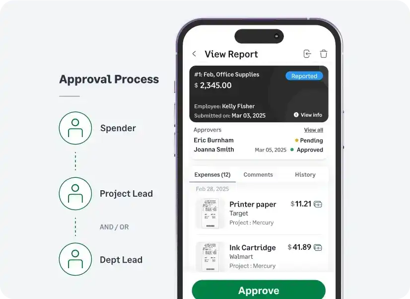 Configure multi-level approvals and enable managers to approve expenses from email or mobile, ensuring on-the-go compliance.